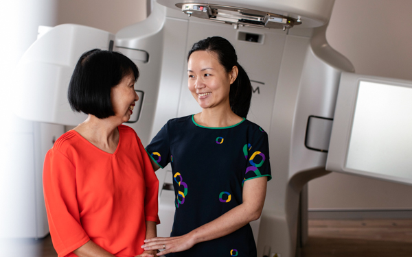 By knowing the precise location of your tumour and tracking any movement, radiotherapy can be delivered more accurately to a smaller treatment area. This means there is less radiation delivered to the surrounding healthy tissue, resulting in fewer side effects.